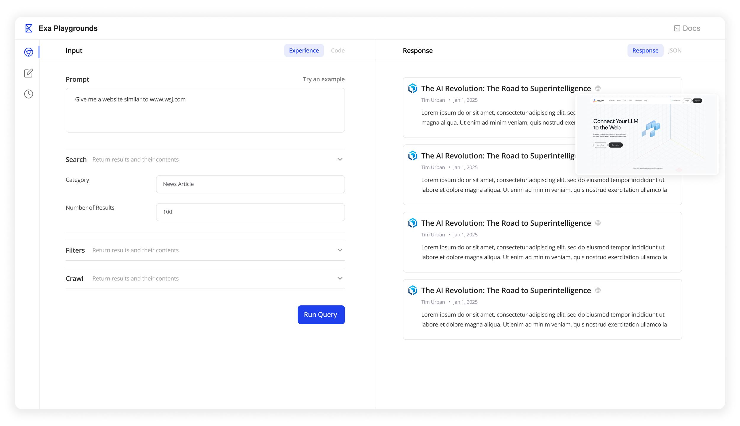 Exa API Playground is a critical entry point for users to explore the capabilities of the Search API, evaluate its relevance for their business needs, and understand how to integrate it seamlessly into their existing systems.