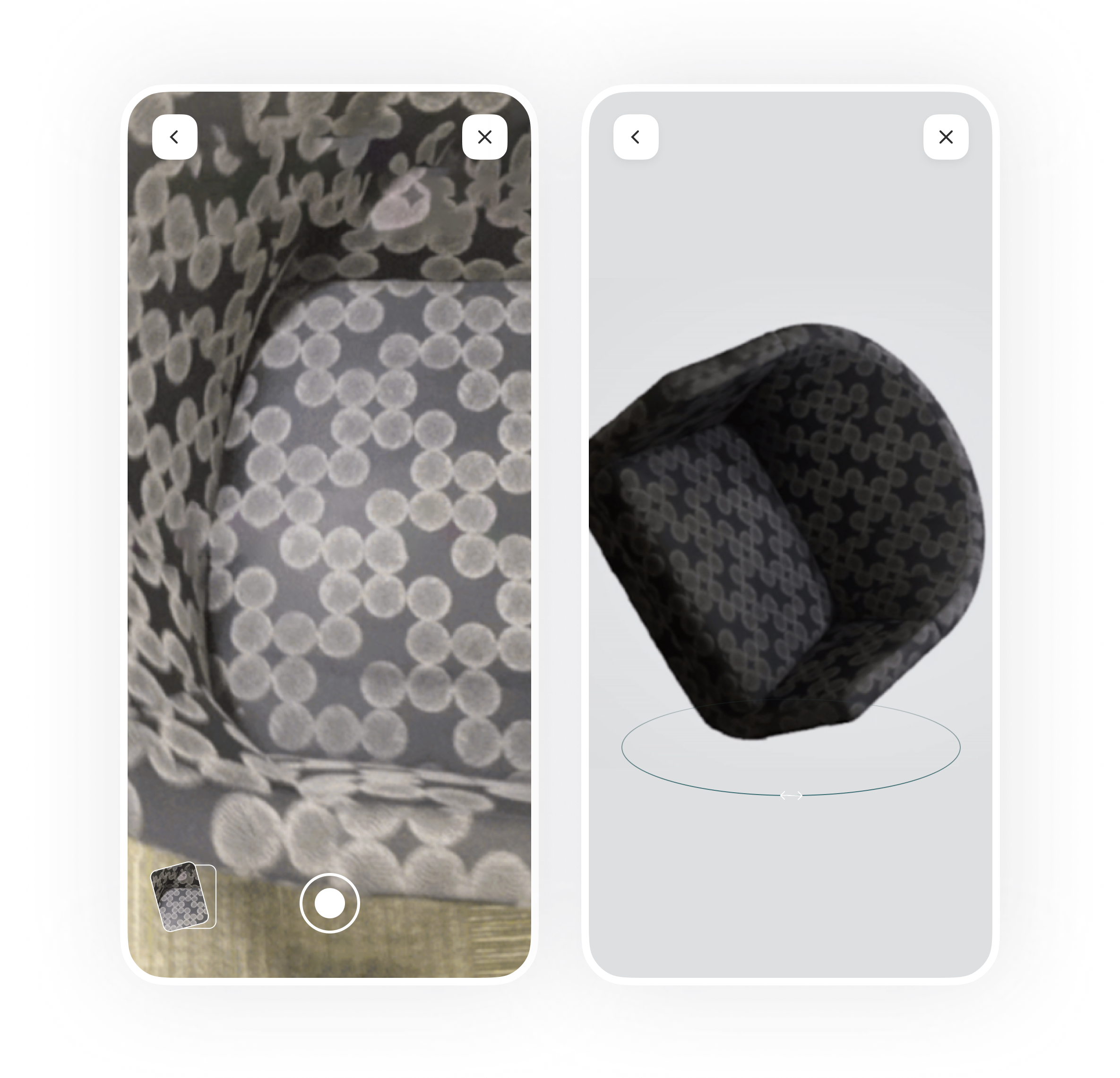 Once models are generated, users can view items in AR at true scale—complete with accurate materials, shadows, and surface imperfections.