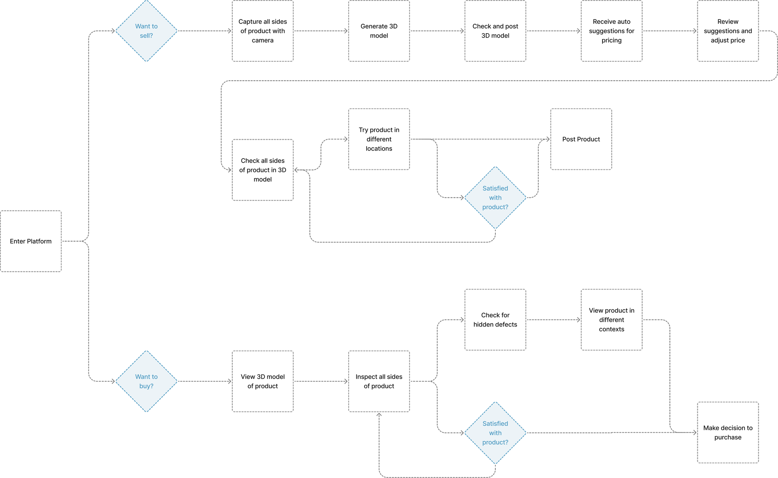 We mapped the information architecture of the two end user flows with photogrammetry to understand how we could solve some of the key pain points.