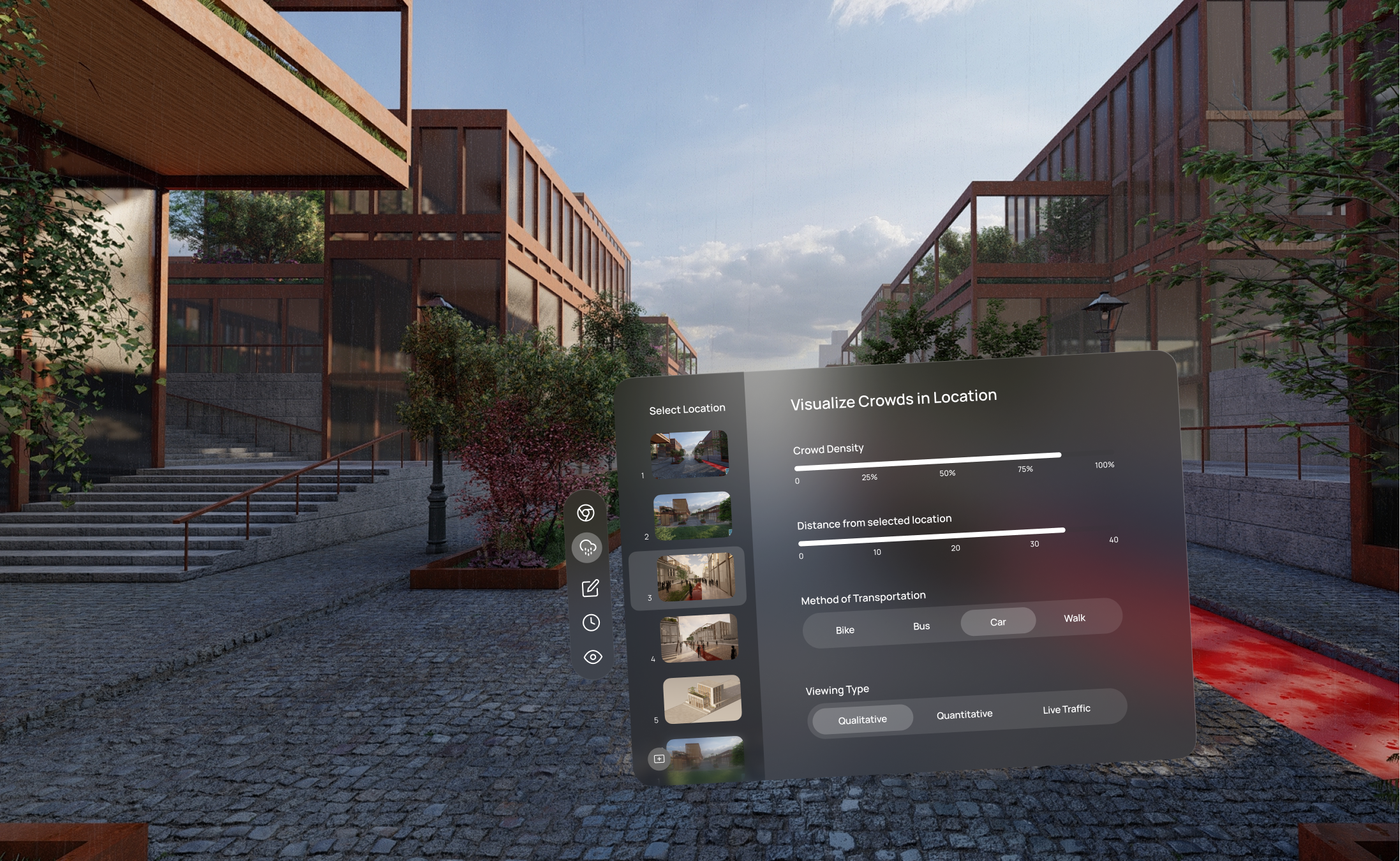 Users can experience key environmental factors—like views, lighting, and weather conditions—directly within the VR space. This eliminates the need for constant exporting, enabling rapid iteration and more informed design decisions in context.