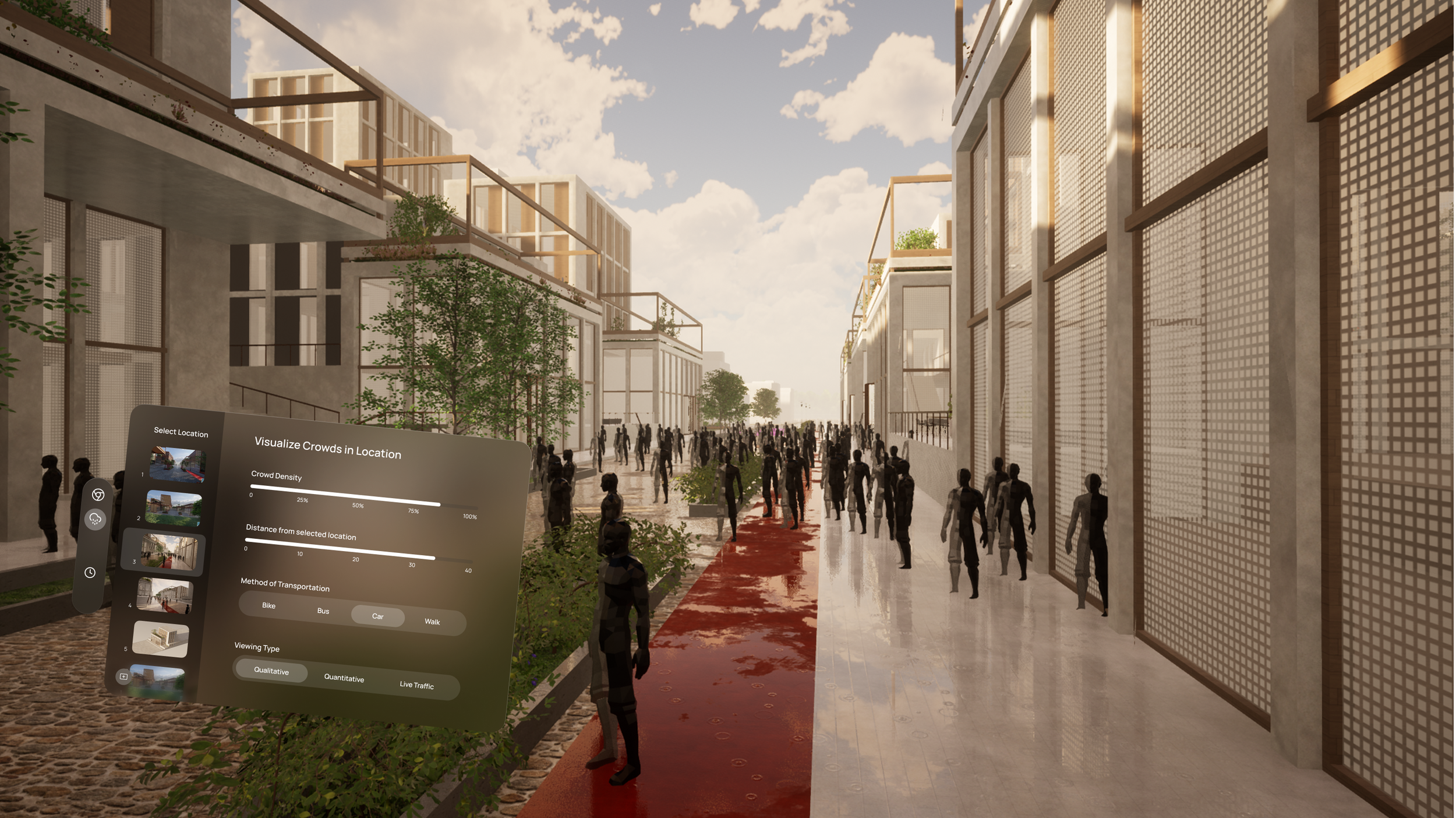 I transformed abstract simulation outputs—like crowd density and circulation—into intuitive spatial cues, such as virtual people walking through the space. This allowed designers to feel the architecture in motion, making performance insights immediately understandable and emotionally resonant.