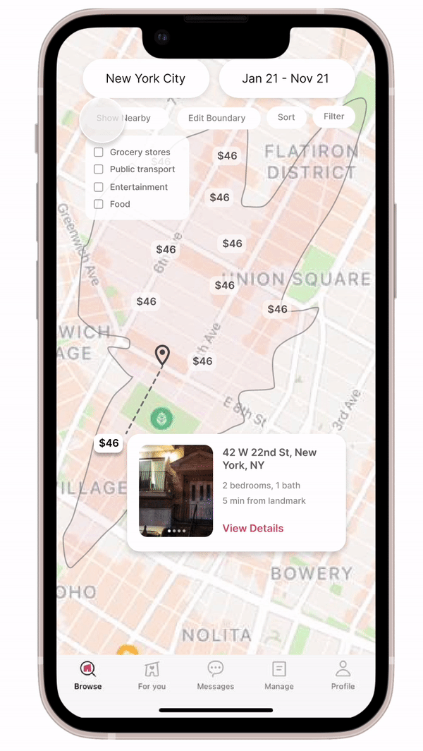 Users can give more precise description of where they want to search for a rental with a “Draw on Map” addition in Search stage